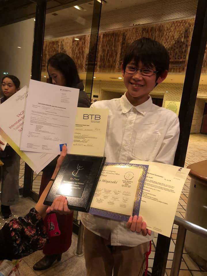 な、な、なんと、YAGP日本グランプリ プリコンペティティブ男性部門で宮﨑圭介(小6)が第一位。同じくプリ部門女性 大岡未来がトップ12位を受賞しました(指導 脇坂凪) 大岡未來は スカラシップを頂きました。おめでとう。 |