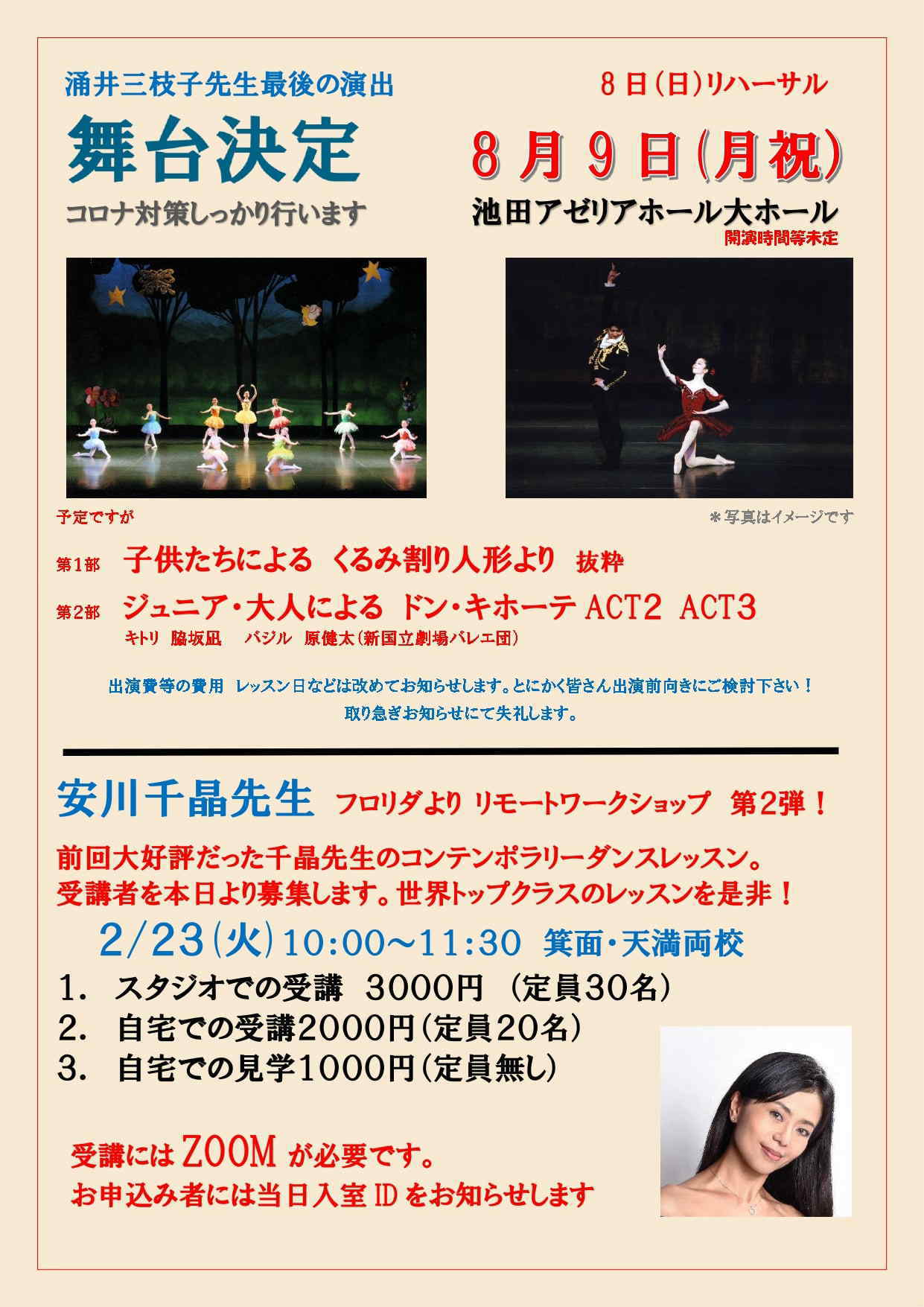 安川千晶先生が帰国!コンテンポラリーダンスWS クラシックWS開催。