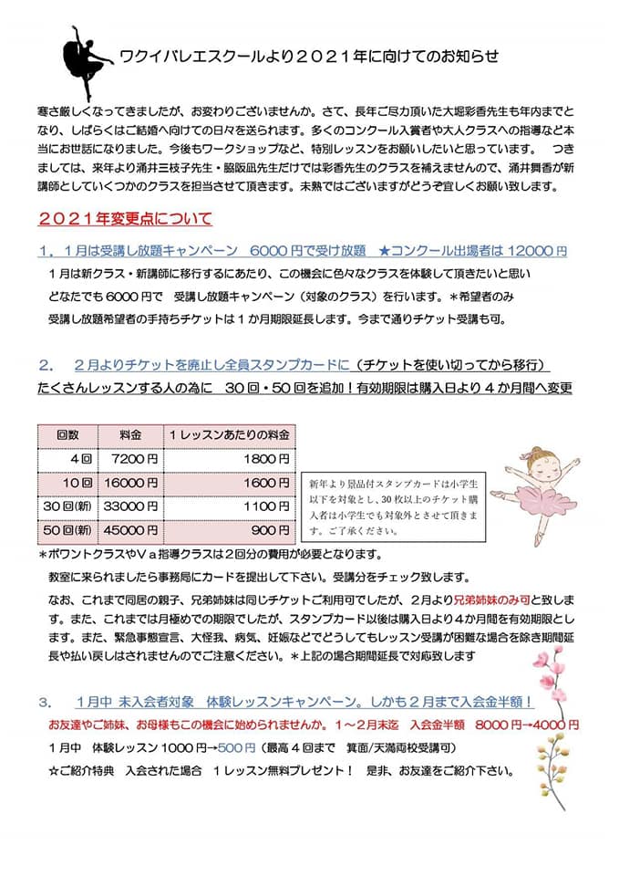 ワクイバレエスクールの最新情報を随時掲載いたします。