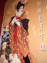 楊貴妃の氏名楊玉環で、四川で生まれ、河南で育ち。天宝四年(745)に貴妃を選ばれた。貴妃の美しさは“絶世冠代、傾国傾城、”と言われていた。貴妃の“天生麗質、花容月貌”で、当時の皇帝“唐玄宗”に一番蘢愛されていた“後宮佳麗三千人、三千蘢愛在一身”。中国古代の四美人の一人だ。中国の唐代は国力が強大で、様々な芸術の創作に有利条件を作り上げた。舞踊芸術と音楽は最隆盛期だ。大量の舞楽芸人を宮廷に駆け集めて、各種な舞楽機構が設置された。当時に宮廷で“梨園”(稽古場)を設置した。弟子は一万人以上に及んだ。唐玄宗皇帝は偉大な音楽家で、沢山の曲を作りあげた。貴妃は有名な舞踊家、様々な宮廷舞を創作して、精典作品として今でも流行っている。その宮廷舞は貴妃が豪華な仙人の様な色々な生活姿を表現・・・・・・ 楊貴妃の役 舞姫・舞踊家胡紅侶(こころ)詩人・楊貴妃(歌)の役 中国歌手李浩(りこう) |