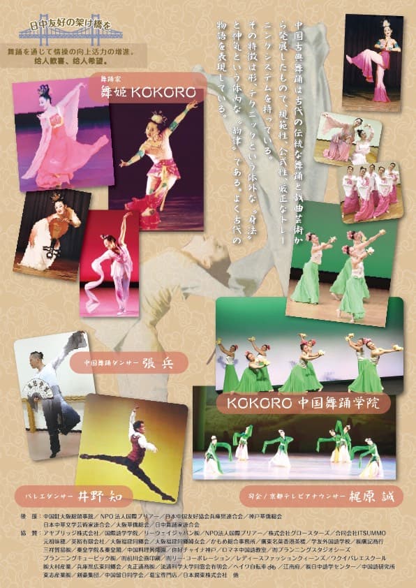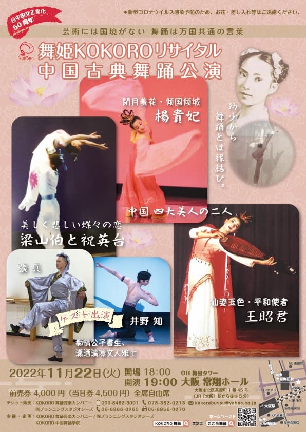 2022年11月22日に「舞姫KOKOROリサイタル·中国古典舞踊公演」の全員集合写真 舞踊家・舞姫KOKOKO 中国舞踊ダンサー張兵 バレエダンサー井野知 KOKORO中国舞踊学院学生 京都テレビアナウンサー梶原誠 ![]() ![]() ![]() |