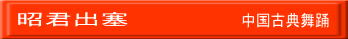 昭君は“王昭君”と言い、中国古代の四大美人(西施・貂嬋・王昭君・楊貴妃)の一人。 紀元前33年西漢元帝時代、皇宮内の画家に賄賂を贈り皇帝に見せる為の似顔絵を美しく描いて貰ったが、王昭君は其れをしなかったので、一番醜く描かれた為皇帝に寵愛されなかった。ある時皇帝はモンゴル王に西漢の大臣に成ってもらう為「漢民族の美人を妻に欲しい」という要求を承諾したが、美しい妃を選ばせたくなかった。一番醜い妃“王昭君”に「嫁に行くように」命令した。最後の別れの時、皇帝は始めて王昭君を見て後悔しました。一番美しい妃だったからです。王昭君は故郷に別れを告げ遠いモンゴルへと嫁に行き其処で生涯を閉じた。 昭君出塞という舞踊は、昭君が琵琶を抱き馬に乗って万里の長城を出て嫁ぐ途中、遠く離れていく故郷の未練な気持ちを描き表しています。