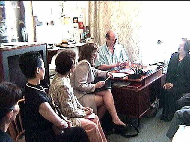 でも1番らしい。床は9メートルもの高さまで持ちあげることも可能。客席も円形で4階まである。「こんな舞台で踊れたら(満員)最高の幸せなんだろうな〜」と、踊ることの 出来ない私でも思った。 またロビーもすごい。衣装の展示や彫刻、絵画・・・まるで総合の博物館のよう。また、ここではダンサーが使用する衣装やシューズすべてをオペラ座内で作られている。 それもそのはず従業員の数は1080人。 これでも全盛期に比べると500人近く減ったらしい。しかしそれだけの 人数を維持できるだけの興行がなされているのか? 実は劇場の維持費の内6割は国が負担しているという。 先にも書いたが、ポーランドの経済状況は決して良くない。 しかしそんな中でもこれだけ国が芸術に対して支援するということは日本ではとうてい考えられないこと。 「まだまだ日本の芸術はヨーロッパの足元にも及ばないな〜。」とつくづく感じたオペラ座でした。 次の訪問先は芸術文化省。海外文化局長のアンナ・ニエヴイアドムスカ氏に御挨拶。アンナさんは実質ここポーランドの芸術文化交流 の全権限を持つ女性で、実は「名古屋バレエコンクール」の主宰者でもある。だから日本のバレエにも詳しい。ここでは涌井先生が代表して御挨拶。密かに日本から用意した打掛をプレゼントすると大変喜んでくれた。 彼女もポーランド公演を全面的に協力するとのこと。具体的に6月18日〜23日の日にちでオファーされた。 これですべての機関が公演を許可することになった。 それにしてもこんな人たちを紹介してくれた緑川さんって何者なんだろう??? ポーランド人は皆日本に対して友好的である。日本ではあまりポーランドという国事体知られていないので、人間のイメージも持たないが、すごくにこやかでやさしい。ついでに女性はメチャきれい。ハンパじゃないよ(^-^) 最後に新聞記者のアダム・チェルシエルスキーさんに取材を受ける。今回の訪問の経緯などを聞かれていたのだろう。 実は席が遠かったのであまり聞いていなかった・・・。 こうして初日の予定が全て終了した。19:00頃ホテルに戻り、皆で食事をし、あわただしい1日が終わった。 明日はバレエ学校を見学して夜からは民族舞踊のリハーサルを見学する。楽しみだ(^-^) |